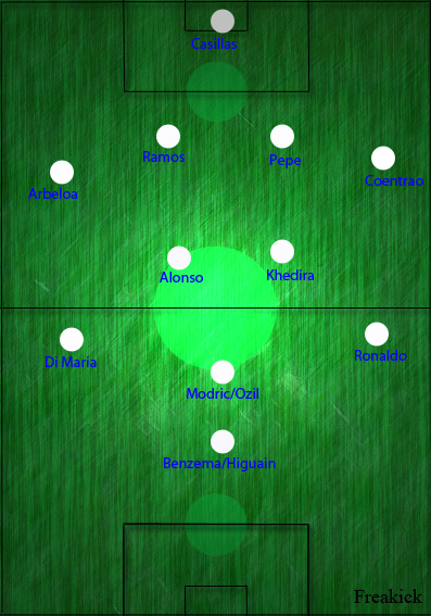 Madrid's 4-2-3-1 features two defensive midfielders, a combative one in Khedira and a passer in Xabi Alonso. However, in La Liga there is hardly any team that plays aggressively against Madrid and it could be argue that two midfielders for screening are really not required in the majority of Real's season. Modric vould replace either Khedira on the basis of technical and playmaking ability and Alonso, on the basis of his mobility. Modric deep would provide a vastly fluid midfield rather than the static one that Madrid have been resembling of late.